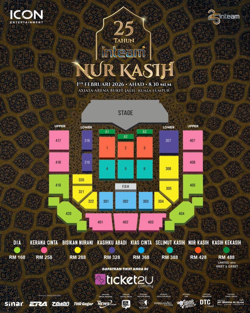 Jangan terlepas membeli kategori pilihan agar 25 Tahun Inteam Nur Kasih menjadi konsert paling bermakna buat anda di awal tahun 2026.