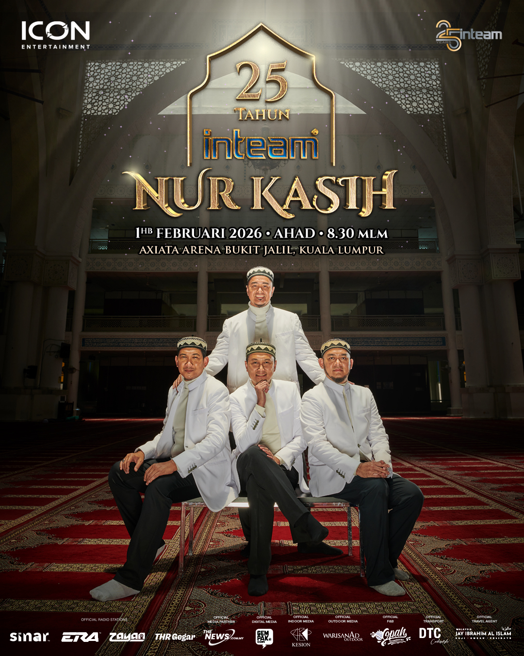 Jangan terlepas membeli kategori pilihan agar 25 Tahun Inteam Nur Kasih menjadi konsert paling bermakna buat anda di awal tahun 2026.