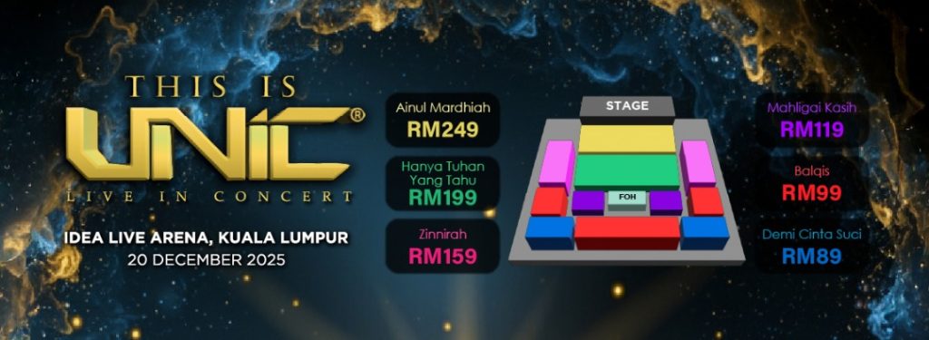 Tiket This Is UNIC: Live In Concert akan mula dijual pada 17 Oktober 2025 melalui laman rasmi www.ticket2u.com.my/ThisIsUNIC, dengan harga bermula RM89 hingga RM488 mengikut kategori. Konsert ini dianjurkan oleh Triple Am Global dengan kerjasama Astro Gempak sebagai rakan digital rasmi, serta beberapa rakan radio dan strategik. Busana eksklusif UNIC direka khas oleh pereka fesyen terkenal, Eja Shahril.